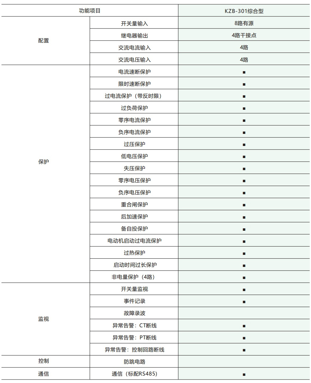 KZB-301数字式微机保护装置适用于35kV 及以下小电流/小 电阻接地系统,集保护、控制、通信、监视等功能。装置运用元件可编程设计思想减少了维护工作量和备品备件,其能灵活地满足多种应用场合需求,是传统电磁式继电保护理想的替代产品。