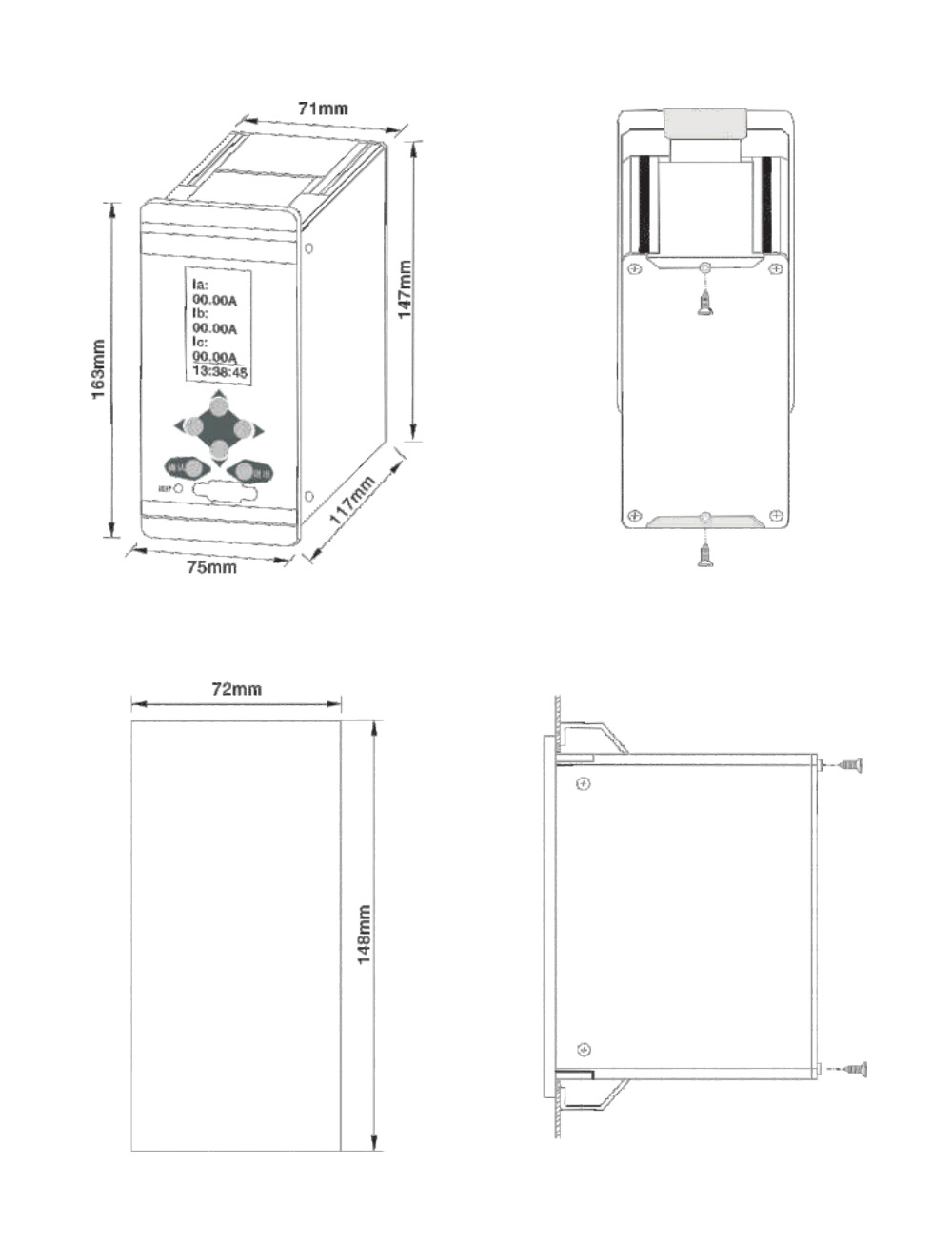 工作电源: DC24V±20% 测试用电源自供电,由相电流互感器取电
